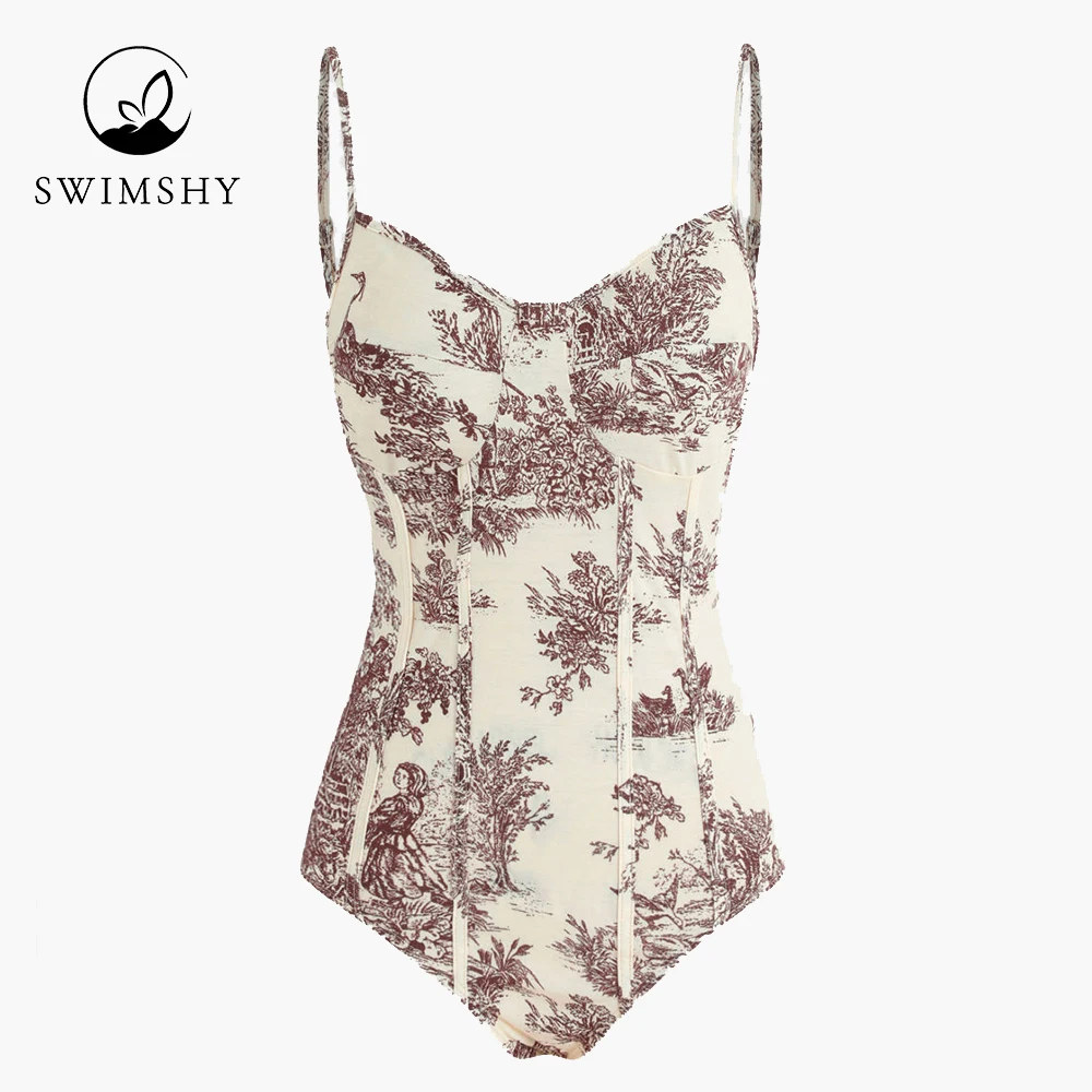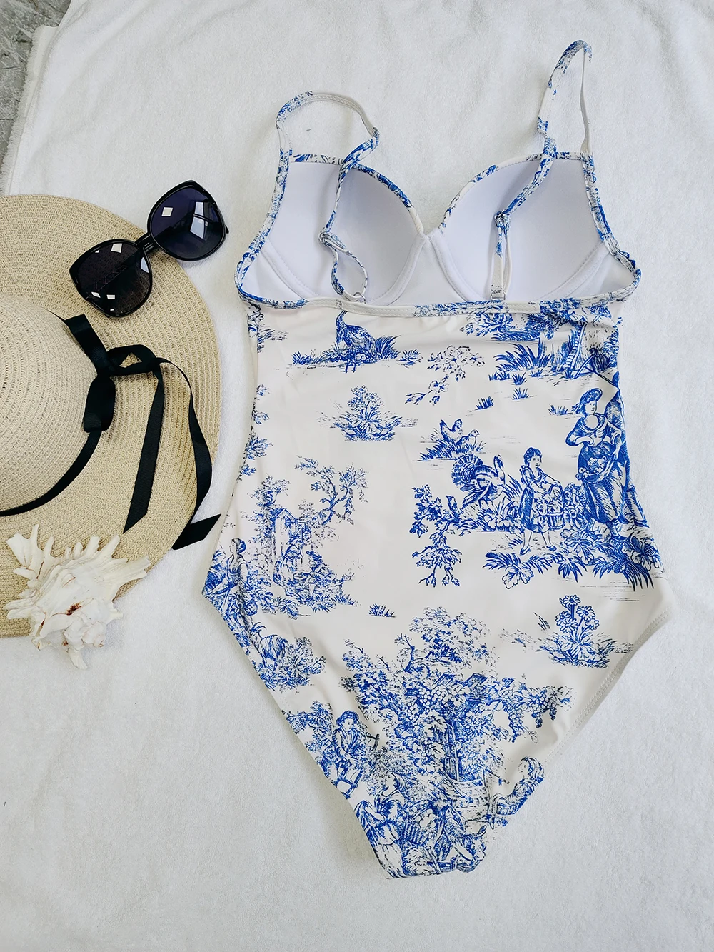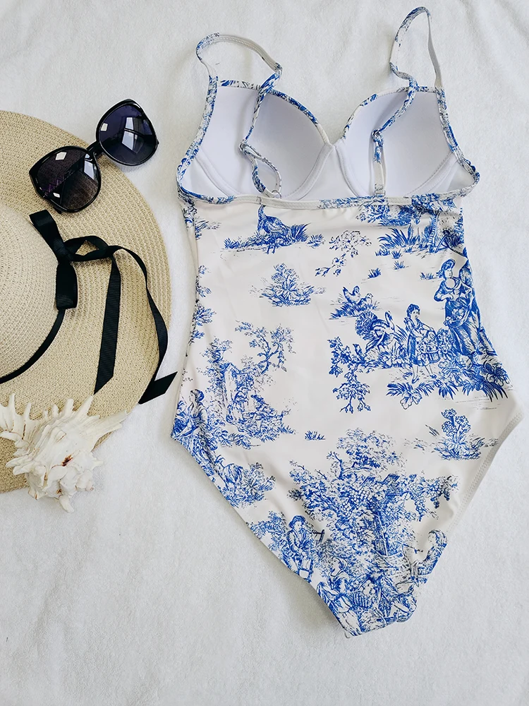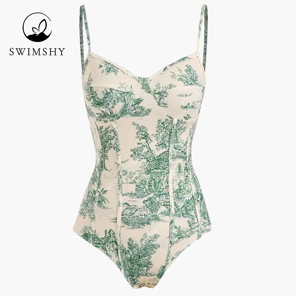 2022 Fashion Printed Simple Bikini One Piece Swimsuit Push Up Swimming Biquini Female Beach Outfits Summer Beachwear Luxury Slim