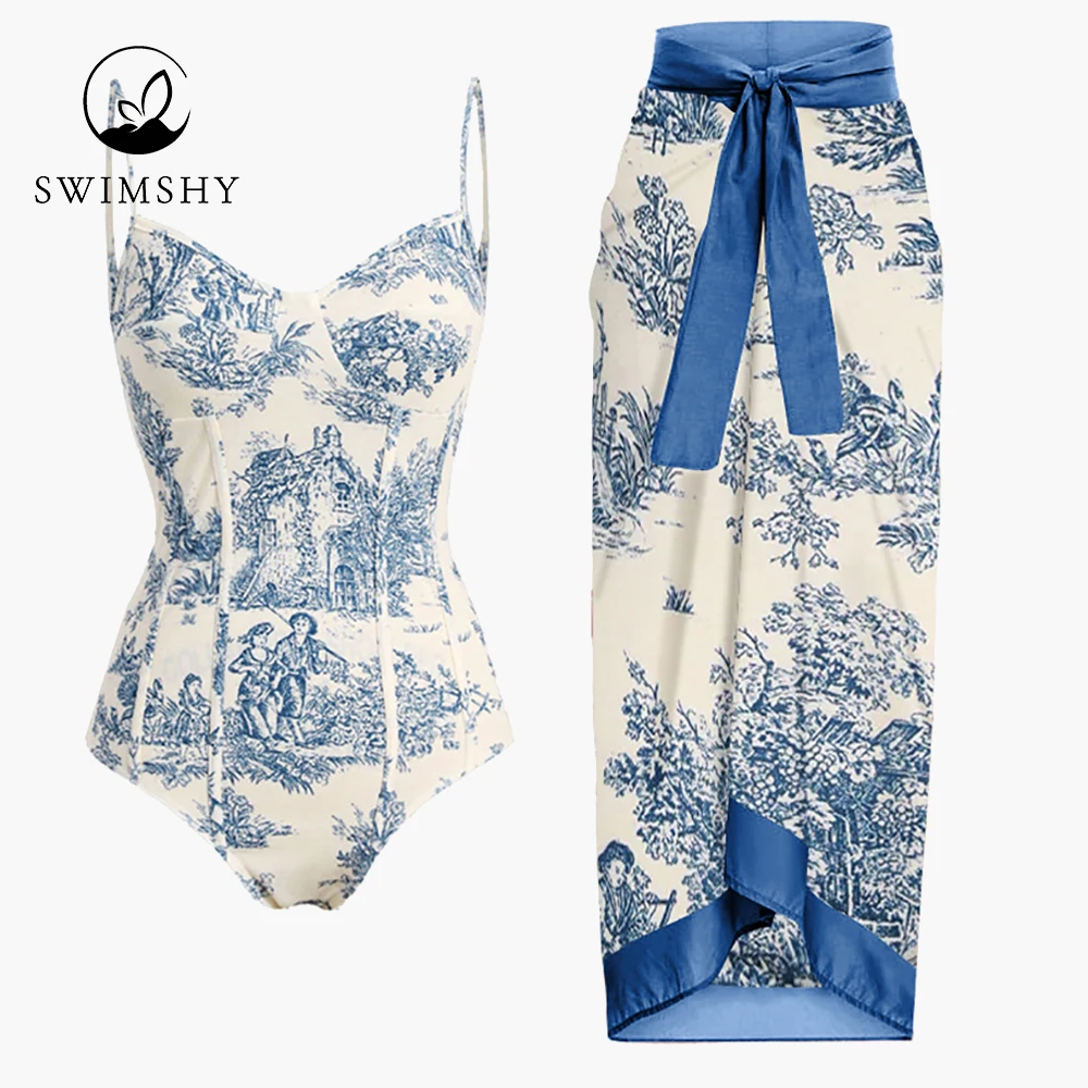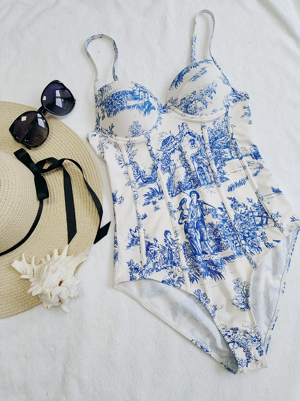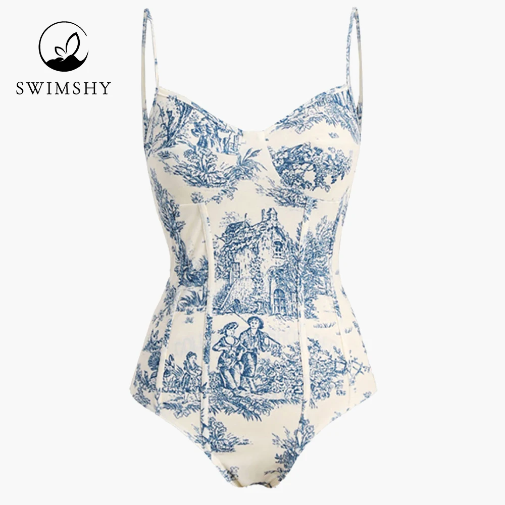 2022 Fashion Printed Simple Bikini One Piece Swimsuit Push Up Swimming Biquini Female Beach Outfits Summer Beachwear Luxury Slim