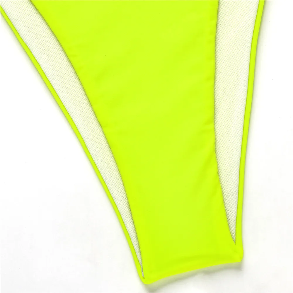 2022 Neon Yellow Crop Top Swimwear Women Summer Sexy Beachwear Mesh Long Sleeve Cover Ups Top Three Piece Swimsuit Bikini Set