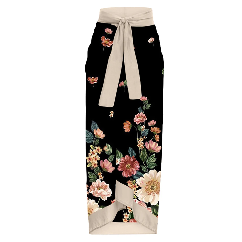 Black and White Gradient Flower Print Bikini One Piece Strap Square Neck Retro Swimsuit Women's Fashion Sexy Backless Beachwear