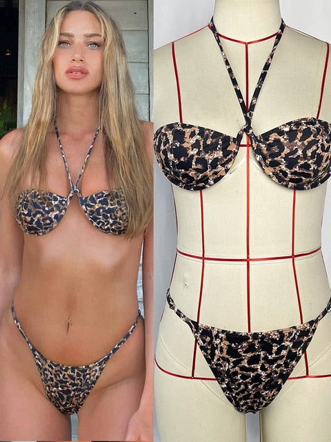 COOBBU Halter CUP Swimwear Sexy Bikinis Patchwork Swimsuit Women 2022 Bathing Suit Leopard Bikini Sets Solid Beachwear Biquini