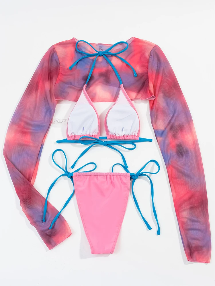 In-X Leopard print 3 pieces set Long sleeves swimsuit women's swimming Sexy bikini 2022 Low waist swimwear women bathing suit