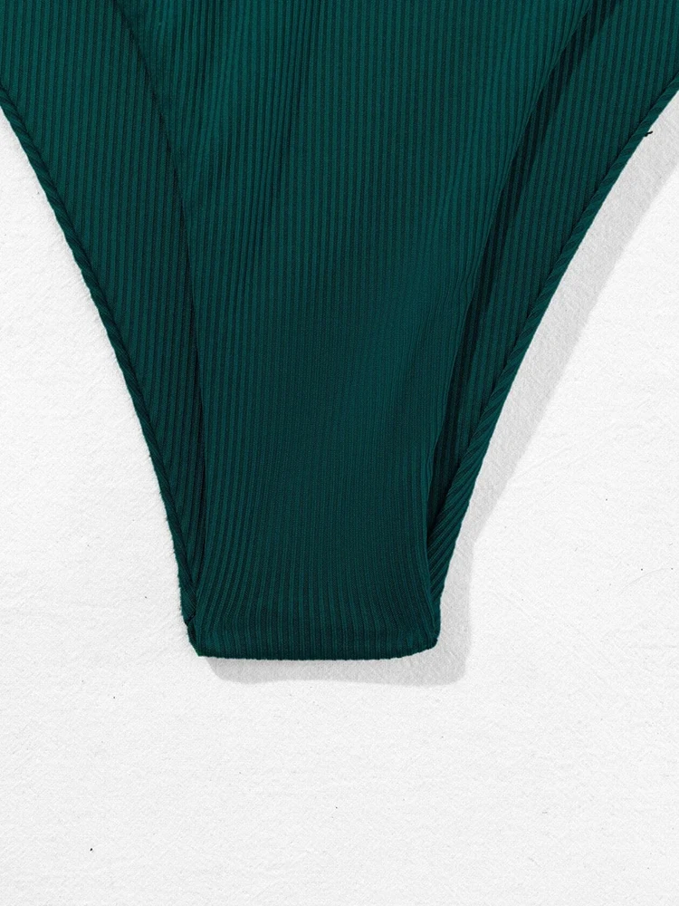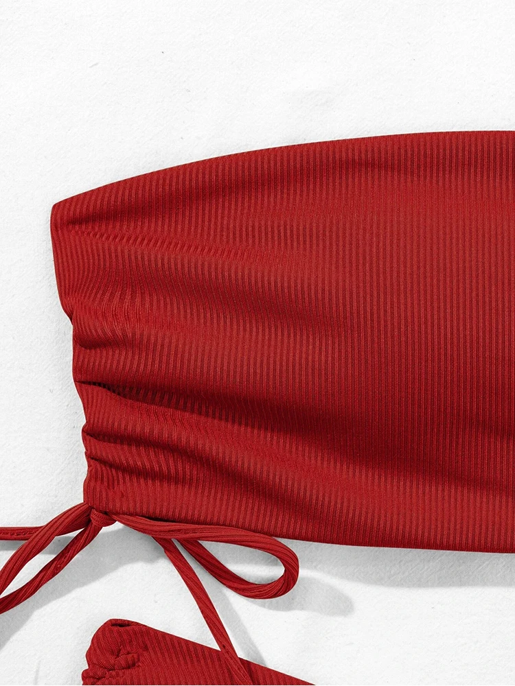 INGAGA Bandeau Women's Bikinis Ribbed Swimsuits 2023 Woman Drawstring Sexy Swimwear Solid Bathing Suit New High Cut Biquini Set