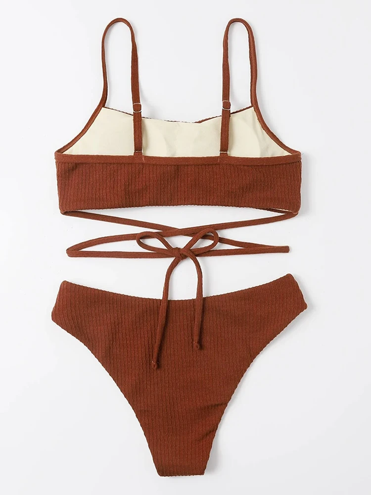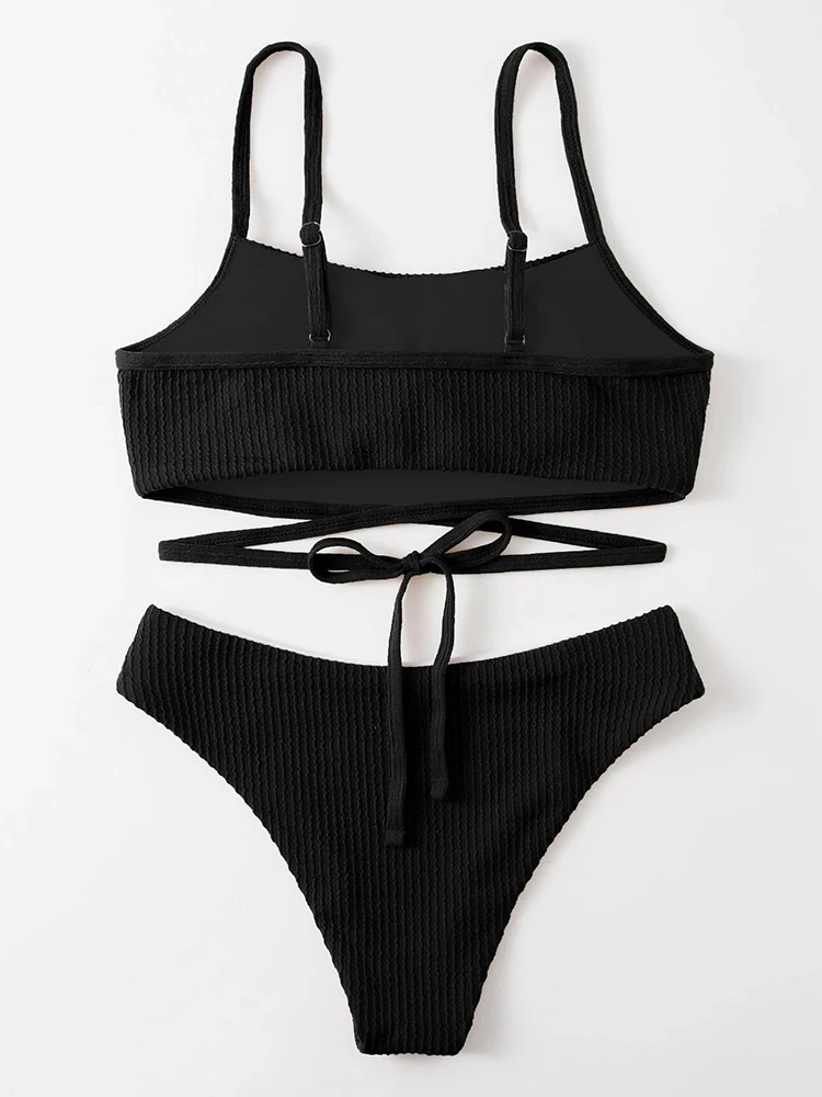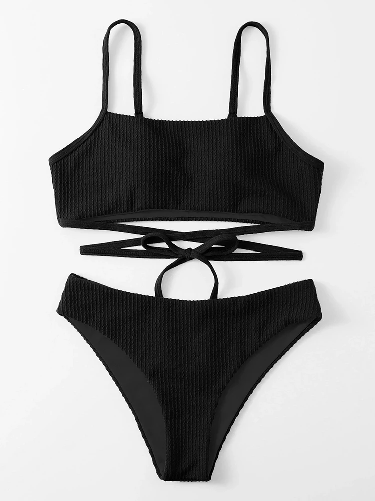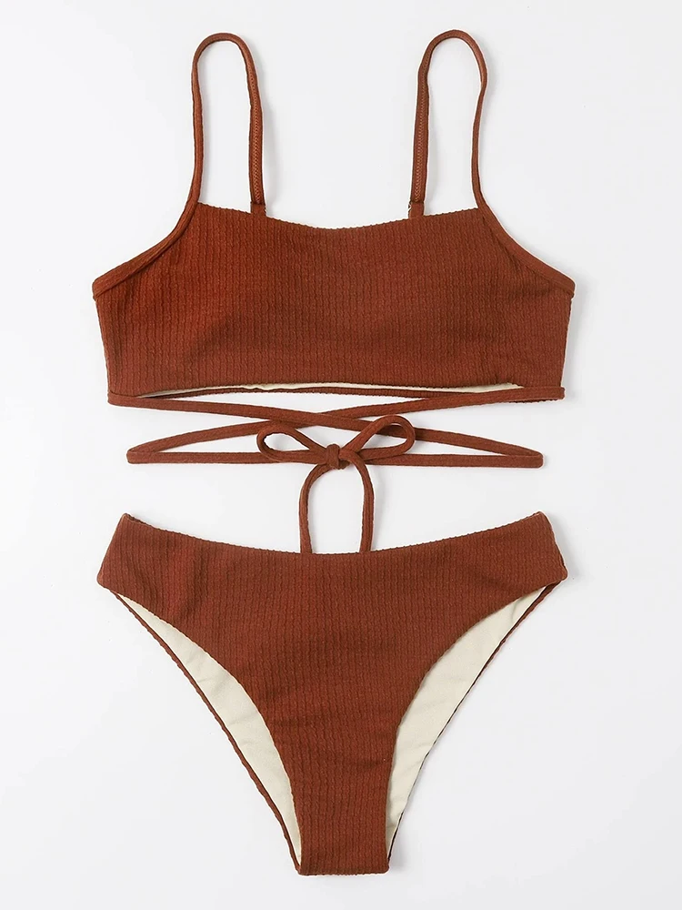INGAGA Crisscross Women's Bikinis 2023 Sexy Ribbed Swimsuits Solid Swimwear Women Spaghetti Strap Biquini Tie Back Bathing Suits
