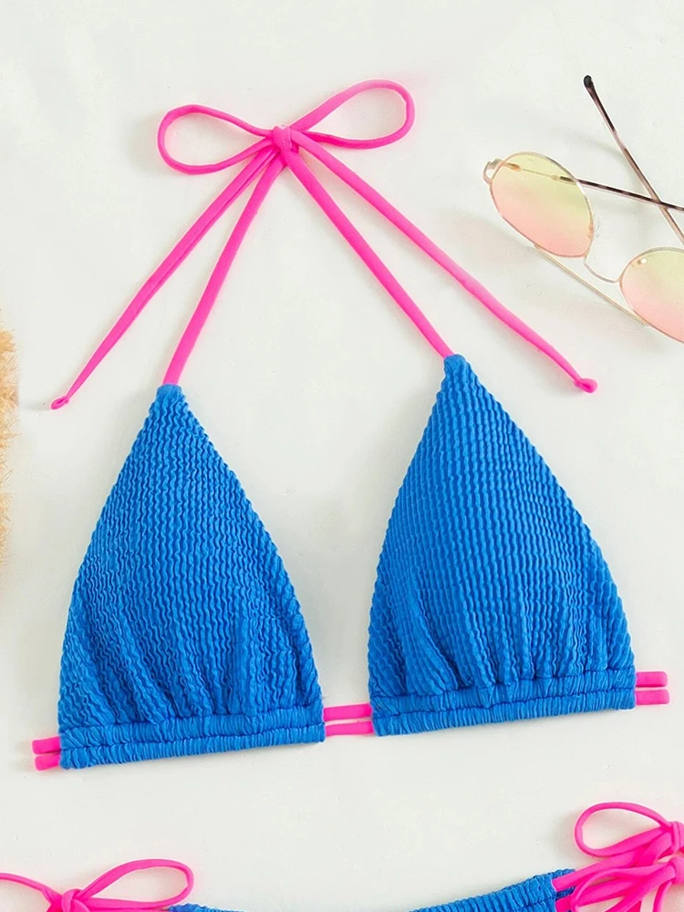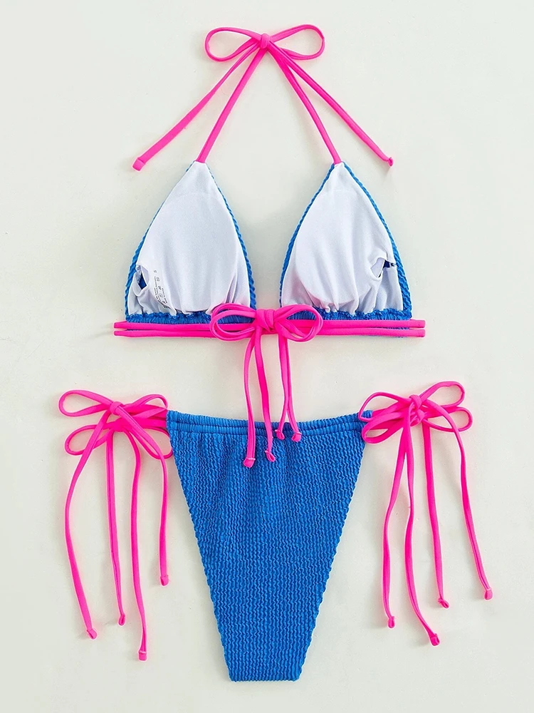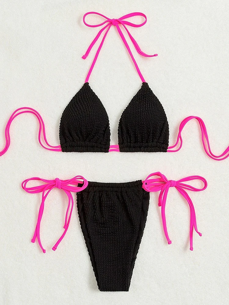 INGAGA Textured Women's Bikinis 2023 Sexy Thongs Swimsuits Halter Swimwear Women Beachwear Solid Biquinis Tie Side Bathing Suits