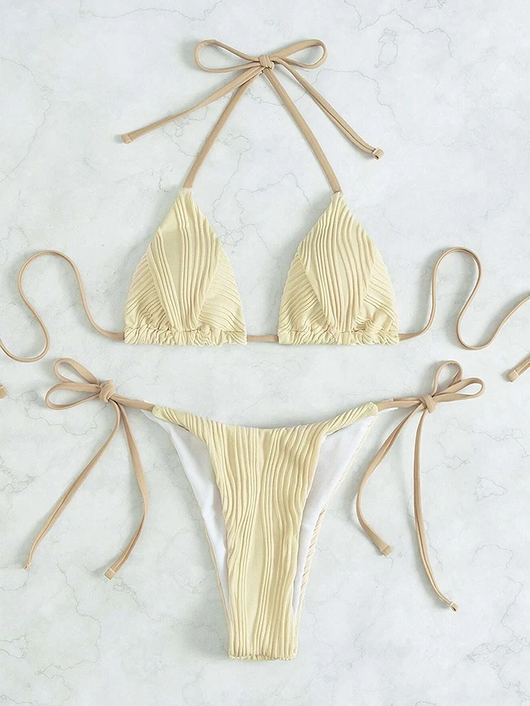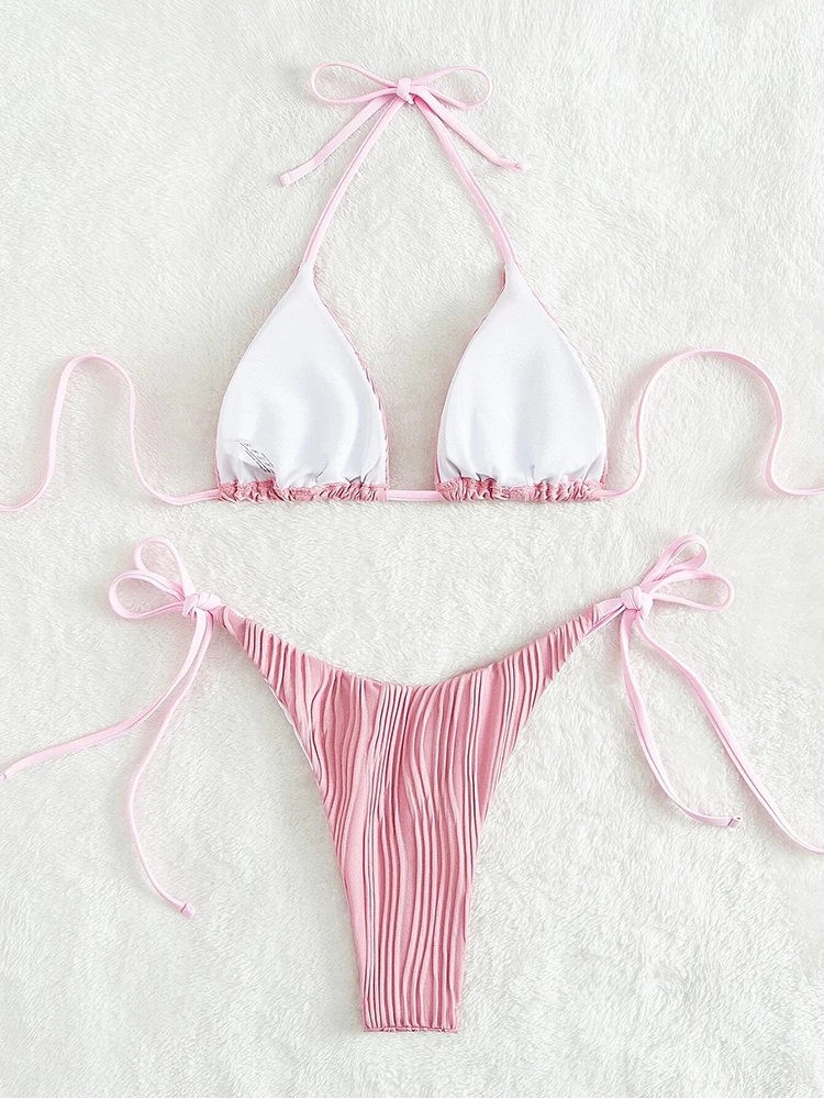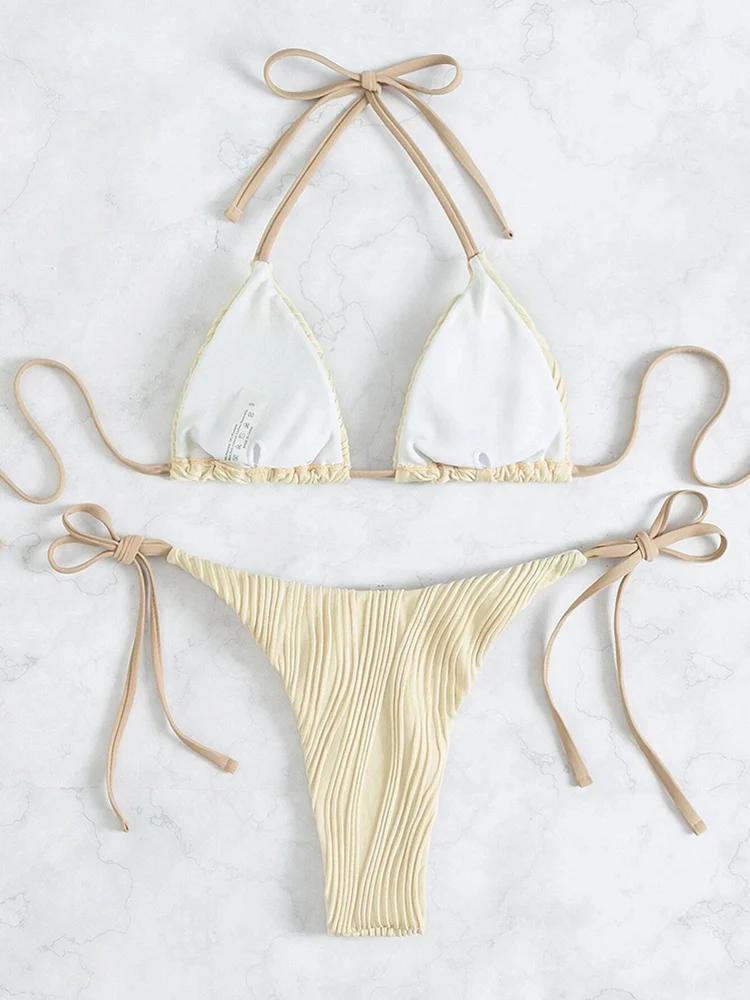 INGAGA Thong Bikinis Sexy String Bikini Swimwear Women 2023 New Swimsuit White Brazilian Bikini Party Beachwear Biquini Halter