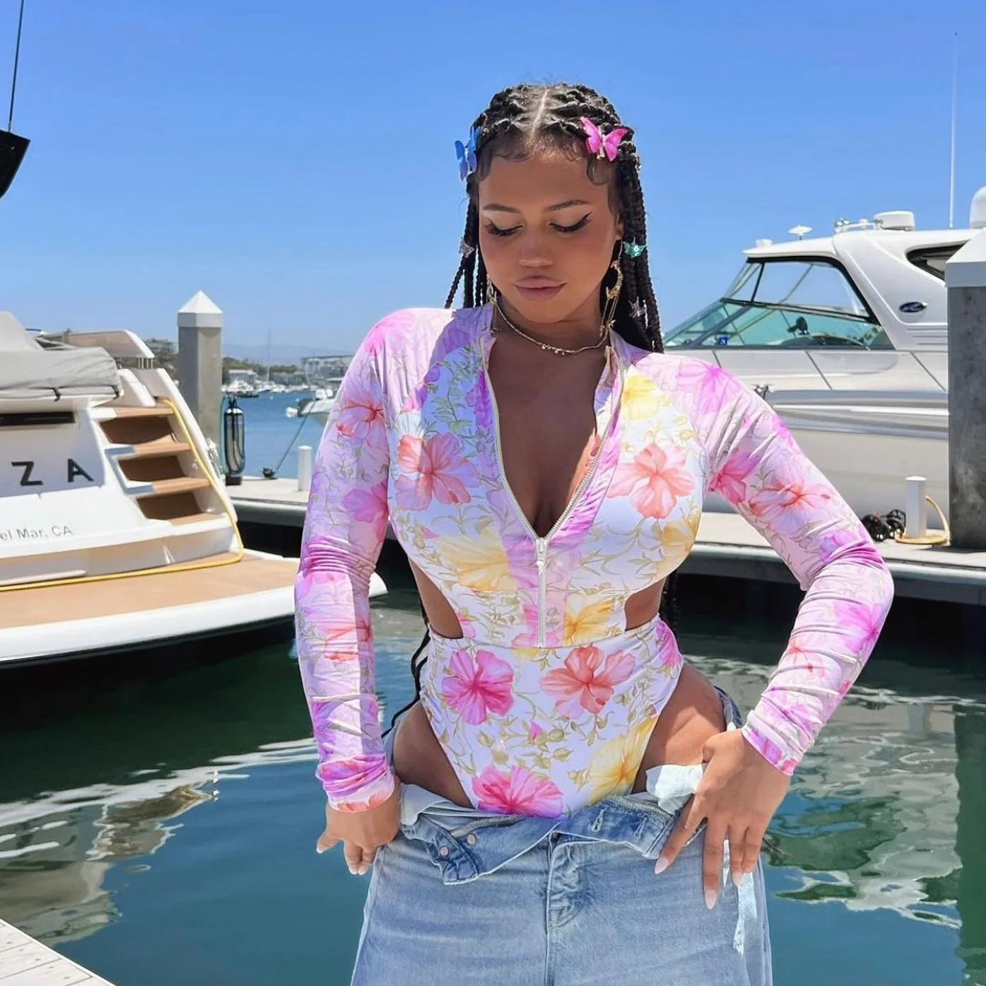 Print Floral One Piece Swimsuit Women Swimwear Monokini Long Sleeve Printed Female Bathing Suit Surfing Bodysuit Swim Wear Beach