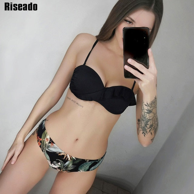 Riseado Sexy Push Up Women's Bikinis Ruffle Swimwear Women Swimsuits 2023 Floral Print Biquini Set Strap Bathing Suits Beachwear