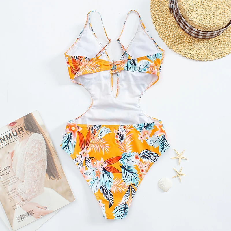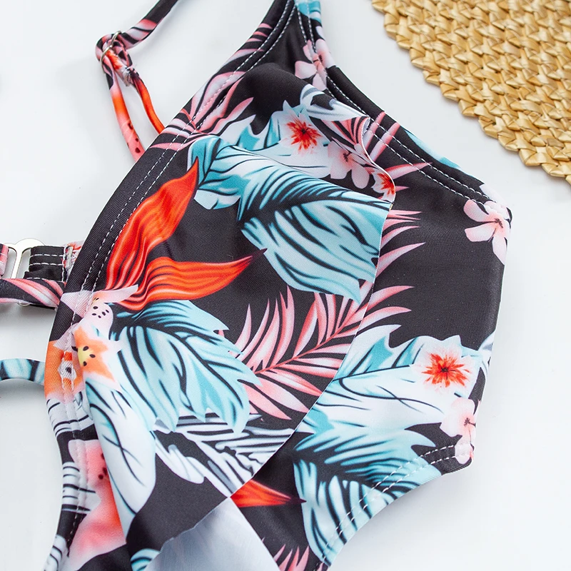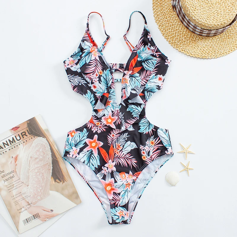 Ruffle One Piece Bikini Set Flounced Swimwear Women 2022 New Summer Swimsuit Plunge Monokini Floral Bodysuit Beachwear Trikini