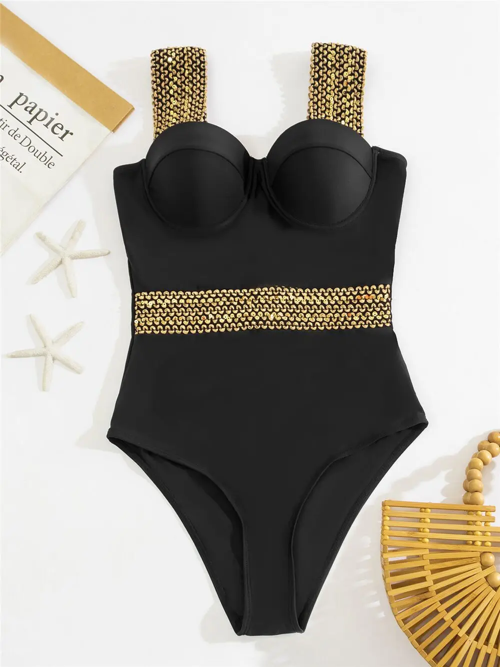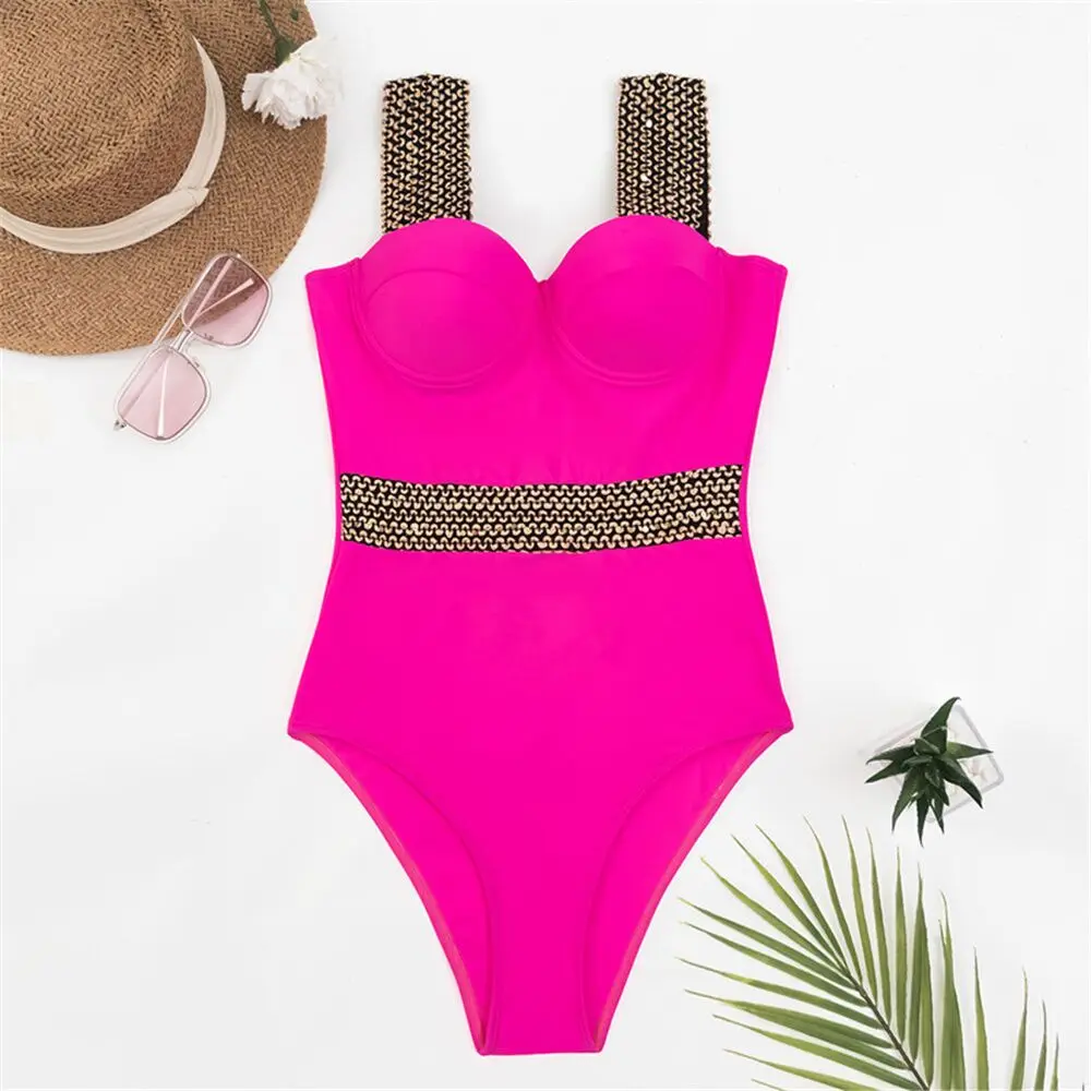 Sexy Push Up One Piece Swimsuit Women 2023 New Stitch Detail Swimwear Monokini Bodysuit Female Beachwear Swimming Bathing Suit