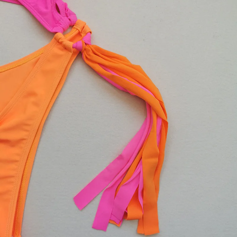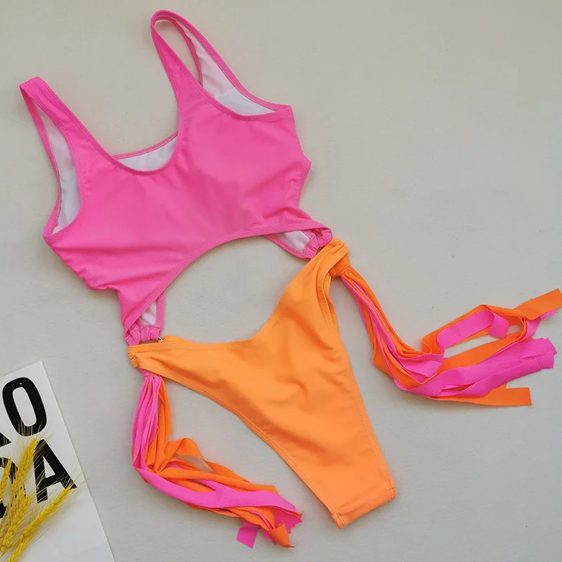 Splicing High Cut Out One Piece Swimsuit Women Tassel Swimwear Female Sexy Bathing Suit String Leopard bikini 2022 Monokini Lady