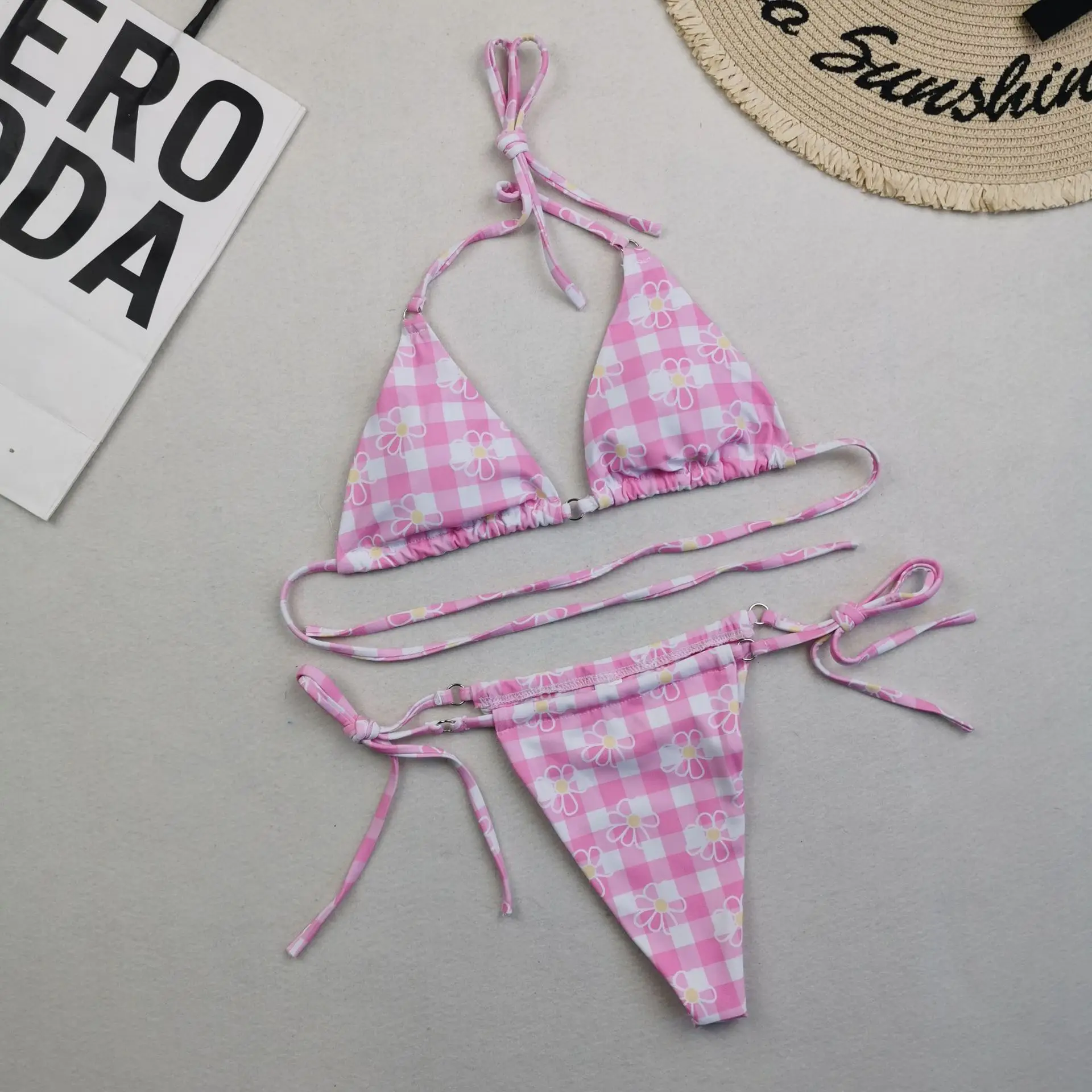 Spoondrift Sexy Floral Micro Thong Bikini Sets for Women Cute Triangle High Cut Bathing Suits Swimsuits 2022 Biquini Swimwear