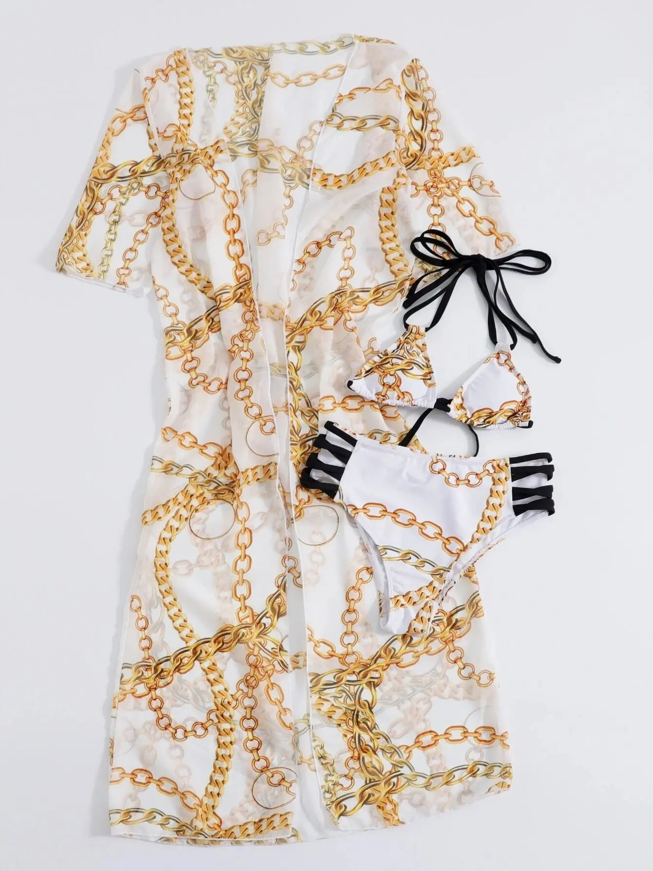 Three Piece Bikini Set Women's Swimsuit Beach Maxi Dress Bikini Cover Up Swimwear Women 2022 Triangle Cup Print Sexy Bikini